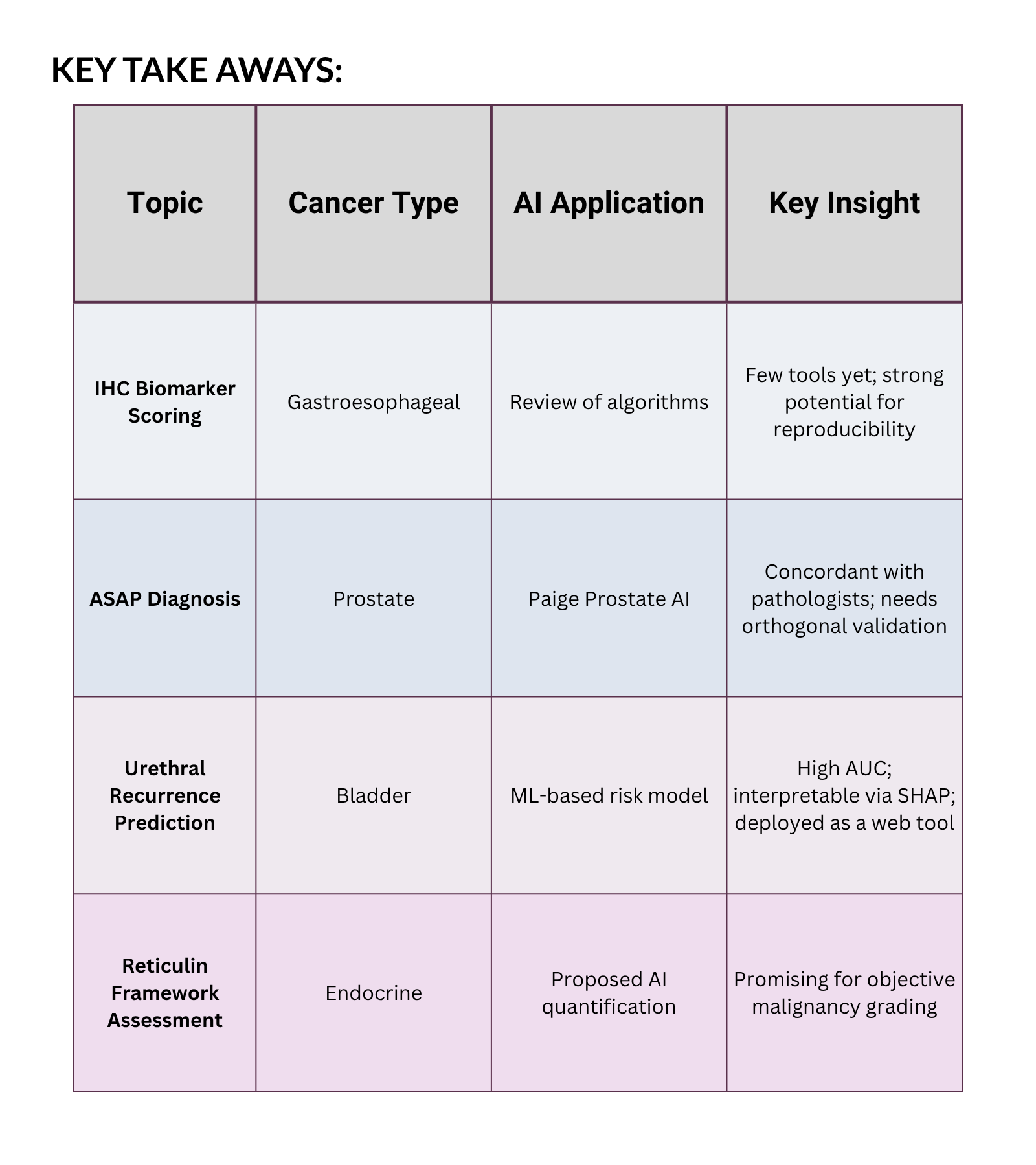 But once we got rolling, things got really interesting. This episode was all about how AI is making its way into some of the trickiest corners of pathology—from immunohistochemical (IHC) scoring in gastroesophageal cancers to refining ambiguous prostate biopsy diagnoses, predicting recurrence in bladder cancer, and even rethinking how we assess the reticulin framework in endocrine tumors.